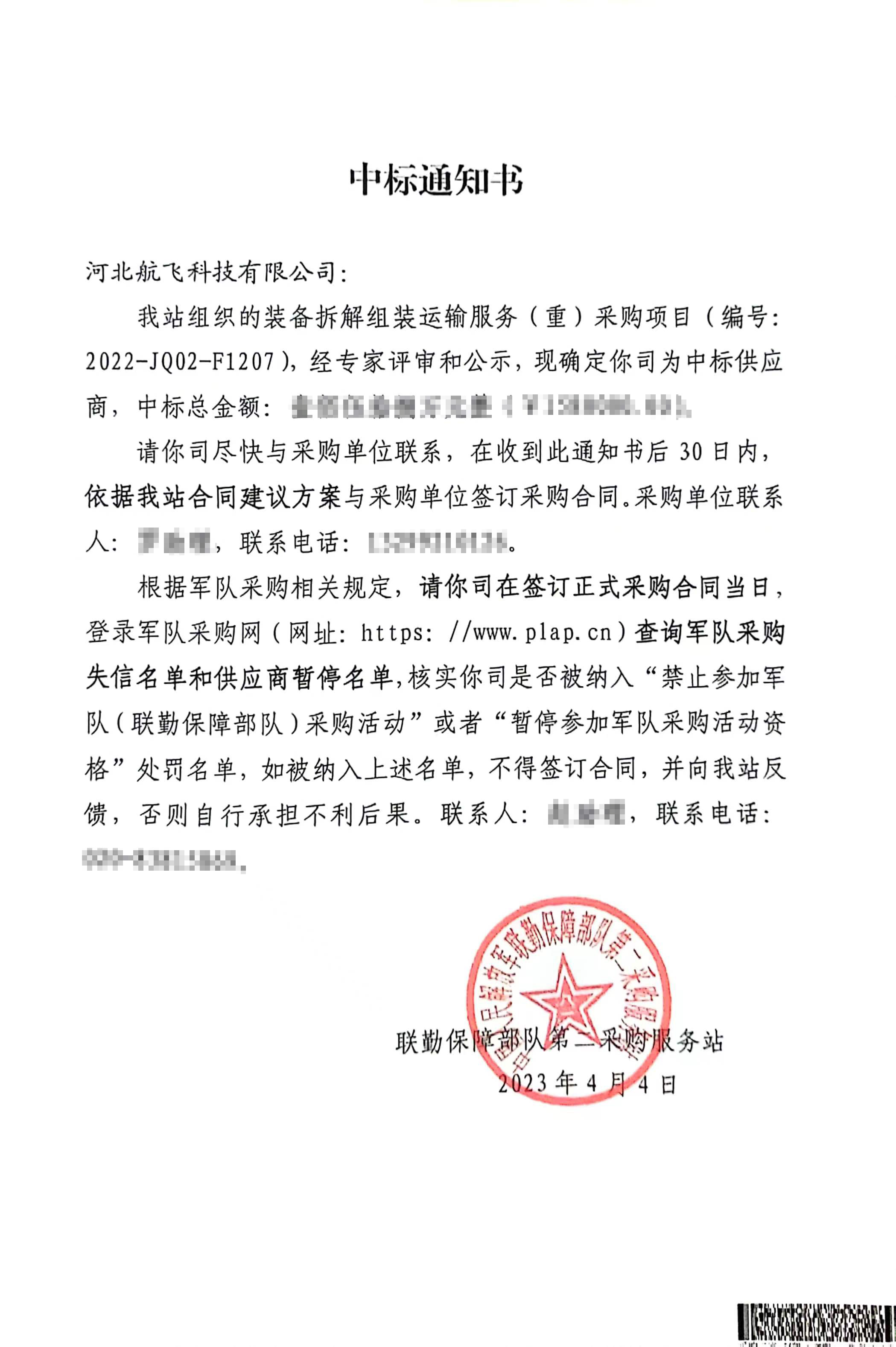 于2023年4月4日,我司獲悉項目中標通知書 于2023年4月20日,我司與項目甲方簽訂項目服務合同......